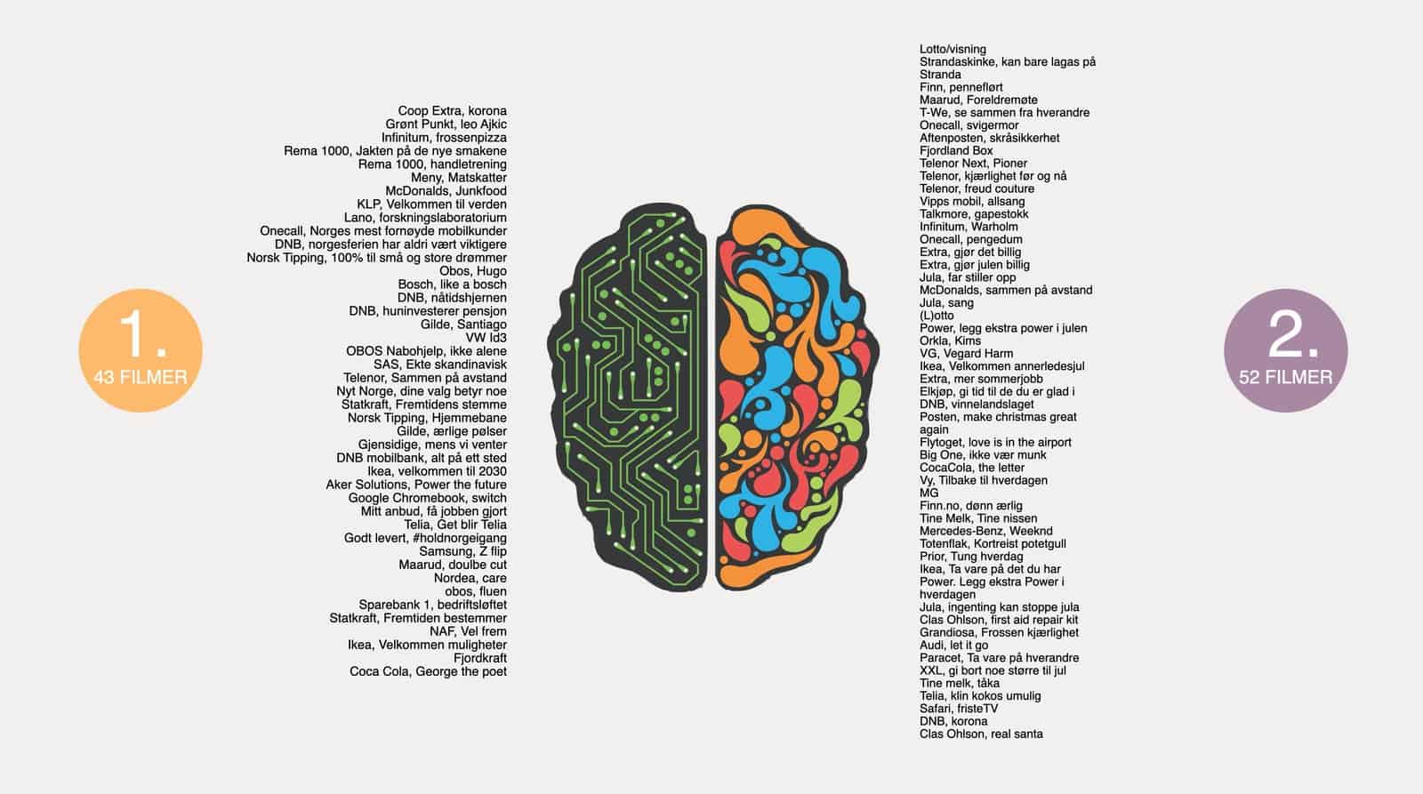 Derfor har vi i Atyp sett nærmere på 95 av reklamefilmene i Reklamebørsen for 2020, for å se om vi kunne lære noe nytt om hva som skal til for at dagens TV reklame skal få bredere oppmerksomhet.